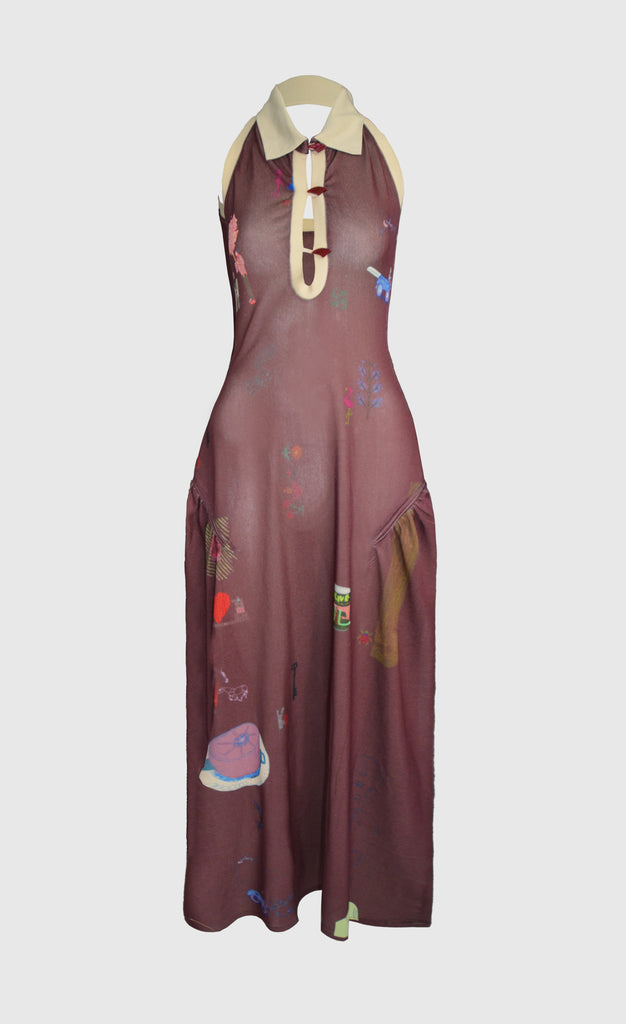 MAQLOUBA HALTER DRESS CHOCOLATE